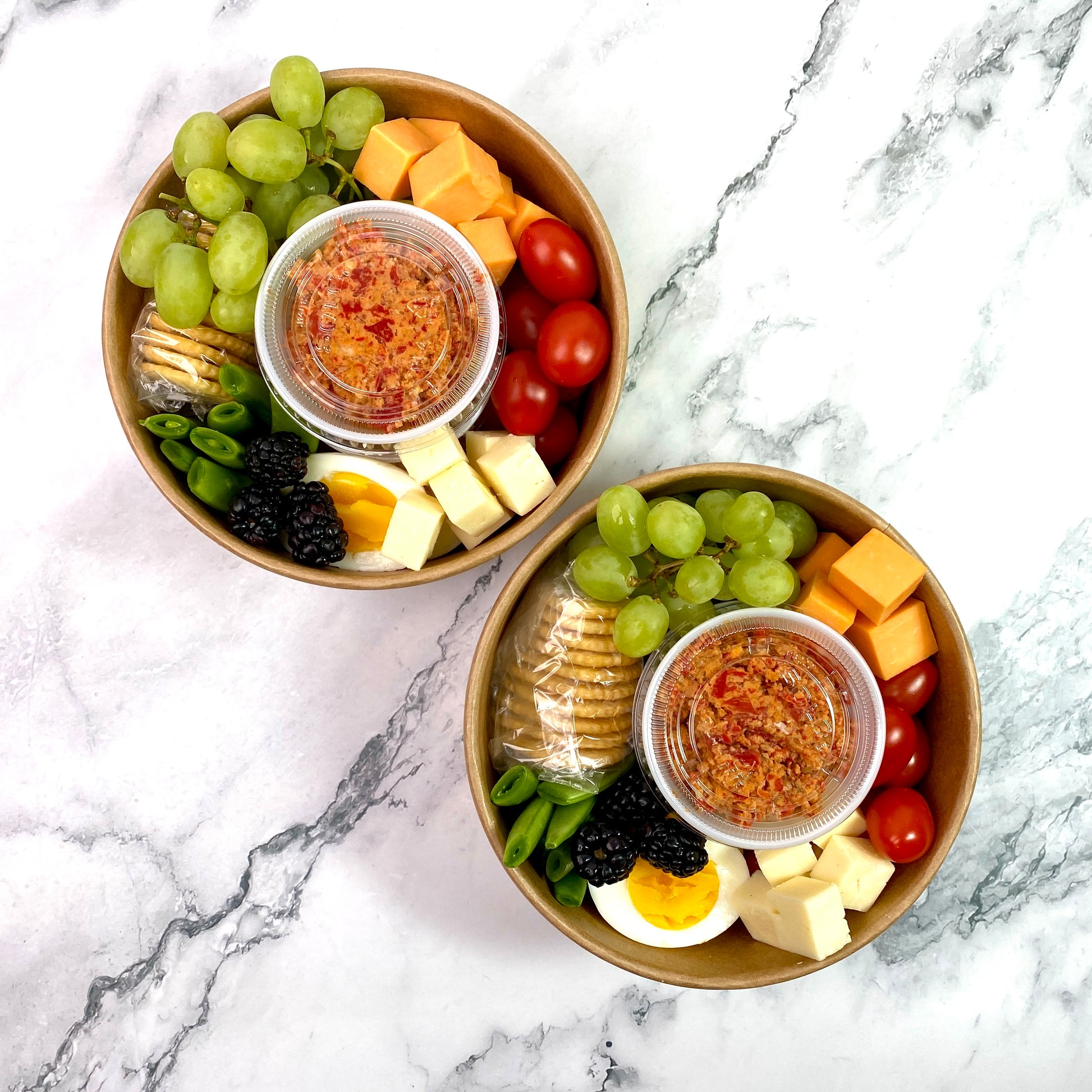This hearty picnic bowl is full of vegetarian protein and perfect for snacking, sharing, or as a complete (and large!) meal...the show-stopper is our housemade Muhammara dip! Put this bowl out to keep your family happy while dinner is cooking (pairs well with wine!), or keep it in the fridge for emergency snacking!